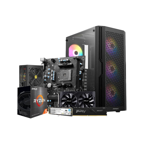 The AMD Ryzen 5 5600 16GB RAM RX 580 8GB Graphics Gaming PC is the ultimate Gaming PC that is designed to deliver the best gaming experience possible. Our Gaming PC is packed with top-of-the-line hardware that can handle even the most demanding games with ease. The AMD Ryzen 5 5600 Desktop Processor is the heart of our Gaming PC, delivering lightning-fast performance and power. The MSI A520M-A Pro AM4 AMD Micro-ATX Motherboard provides a stable and reliable platform for all your gaming needs. It also offers plenty of connectivity options, allowing you to connect all your peripherals and accessories. For lightning-fast response times, we have included the Colorful Battle-AX 16GB DDR4 3200MHz Desktop RAM. Our Gaming PC also features Colorful CN600 512GB PRO M.2 NVMe PCI-e Internal SSD, which provides lightning-fast boot times, faster game load times with massive storage solution. It ensures that your gaming experience is as smooth and seamless as possible. The Unika Radeon RX 580 BLIZZARDS 8GD5 V2 Graphics Card is the star of our Gaming PC, delivering stunning visuals and smooth gameplay. It can easily handle even the most demanding games, ensuring you never miss a beat. We have included the 1STPLAYER DK 5.0 PS-500AX 500W 80 PLUS BRONZE Non-Modular ATX Power Supply to power all of these high-performance components. This power supply ensures stable and reliable power delivery, even during intense gaming sessions. Our Gaming PC is housed in the ANTEC AX20 ELITE MID TOWER GAMING CASING. This casing not only looks great, but it also provides excellent cooling and cable management, ensuring that your Gaming PC runs smoothly and quietly. The Gaming PC is the ultimate gaming machine that is designed to deliver an unparalleled gaming experience. Whether you're a casual gamer or a competitive esports player, our Gaming PC has everything you need to take your gaming to the next level.