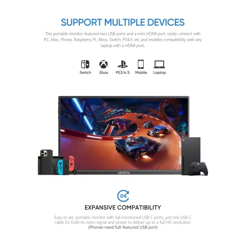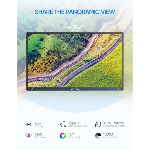 The Arzopa A1S 14 Inch FHD IPS Portable Monitor is a stylish and adaptable secondary screen intended for mobile productivity and entertainment. With a 14-inch Full HD (1920×1080) IPS display, it offers sharp visuals, extensive 178° viewing angles, and bright colors, making it perfect for work, gaming, movies, or multitasking with laptops, smartphones, and gaming systems. Featuring plug-and-play USB-C and Mini HDMI connections, integrated speakers, and an ultra-portable, lightweight design, the A1S allows you to effortlessly enhance your screen area whenever and wherever needed, without the requirement for additional drivers or power adapters — ideal for professionals, students, and travelers seeking more display space. The Arzopa A1S 14 Inch FHD IPS Portable Monitor comes with 2 years limited warranty.