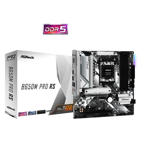 The ASRock B650M Pro RS AM5 Micro ATX Motherboard is a high-performance, feature-rich motherboard designed for mainstream DIY enthusiasts and gamers. Supporting AMD Socket AM5 Ryzen 9000, 8000, and 7000 Series Processors, this ASRock motherboard ensures compatibility with the latest CPUs. It boasts an 8+2+1 Power Phase with Dr.MOS for stable power delivery, supports up to 4 DDR5 DIMMs with speeds up to 7200+ MHz (OC), and offers versatile storage options with multiple M.2 slots and SATA3 connectors. With robust connectivity options, including USB 3.2 Gen2 and Dragon 2.5G LAN, and integrated Realtek ALC897 7.1 CH HD Audio Codec with Nahimic Audio, this ASRock motherboard delivers top-tier performance and reliability for gaming, content creation, and general computing tasks. ASRock B650M Pro RS AM5 Micro ATX Motherboard comes with 3 Years Warranty.