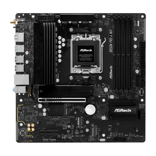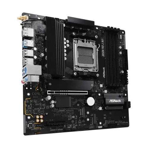 The ASRock B850M Pro-A WiFi AM5 DDR5 mATX Motherboard is a small but powerful option. It can handle up to 256 GB of fast DDR5 memory across its dual memory channels and supports Ryzen 7000, 8000, and 9000 series processors on the AM5 socket. The board has several M.2 slots for quick NVMe SSDs and PCIe 5.0 and PCIe 4.0 slots for next-generation graphics and expansion cards. With built-in WiFi 6E, Bluetooth, and 2.5 Gb Ethernet in addition to USB-C and HDMI outputs, connectivity is outstanding for its size. For individuals who desire a feature-rich, future-proof motherboard in a smaller package, the B850M Pro-A WiFi is perfect because of its strong power supply design, efficient cooling, and mini-ATX form factor. ASROCK B850 PRO-A WiFi 6E AM5 DDR5 ATX Motherboard with 3 years warranty.