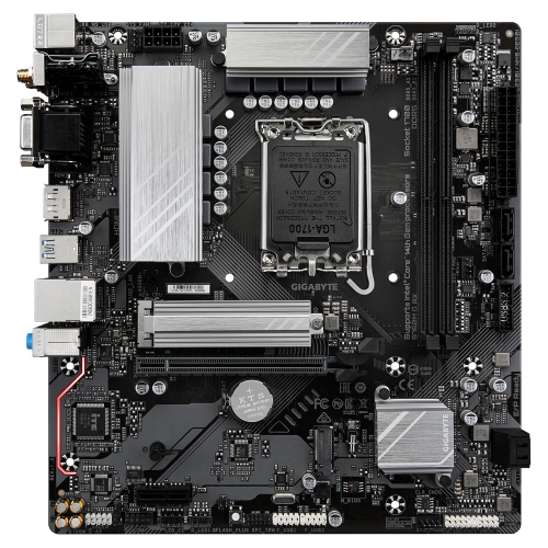 The GIGABYTE B760M G AX DDR5 Micro ATX Intel Motherboard is perfect for mainstream gaming and productivity builds since it is built to give dependable performance and contemporary features in a small form factor. This board guarantees seamless compatibility with the newest CPUs by supporting 12th, 13th, and 14th Gen Intel Core processors. Additionally, support for DDR5 RAM offers higher speeds and increased efficiency for gaming and multitasking. It has M.2 PCIe NVMe storage and PCIe 4.0 slots for high-performance graphics cards, which guarantee quick load times and responsiveness. High-speed Ethernet and integrated AX Wi-Fi provide dependable and quick connectivity, making it ideal for work-from-home requirements, online gaming, and streaming. In addition, the motherboard has GIGABYTE's Ultra Durable components for long-lasting stability, a robust power design, and efficient cooling options. For PC systems that are both affordable and future-ready, the B760M G AX DDR5 is a great option due to its balance of performance, connection, and small size. GIGABYTE B760M G AX DDR5 Micro ATX Intel Motherboard comes with 3 years warranty.