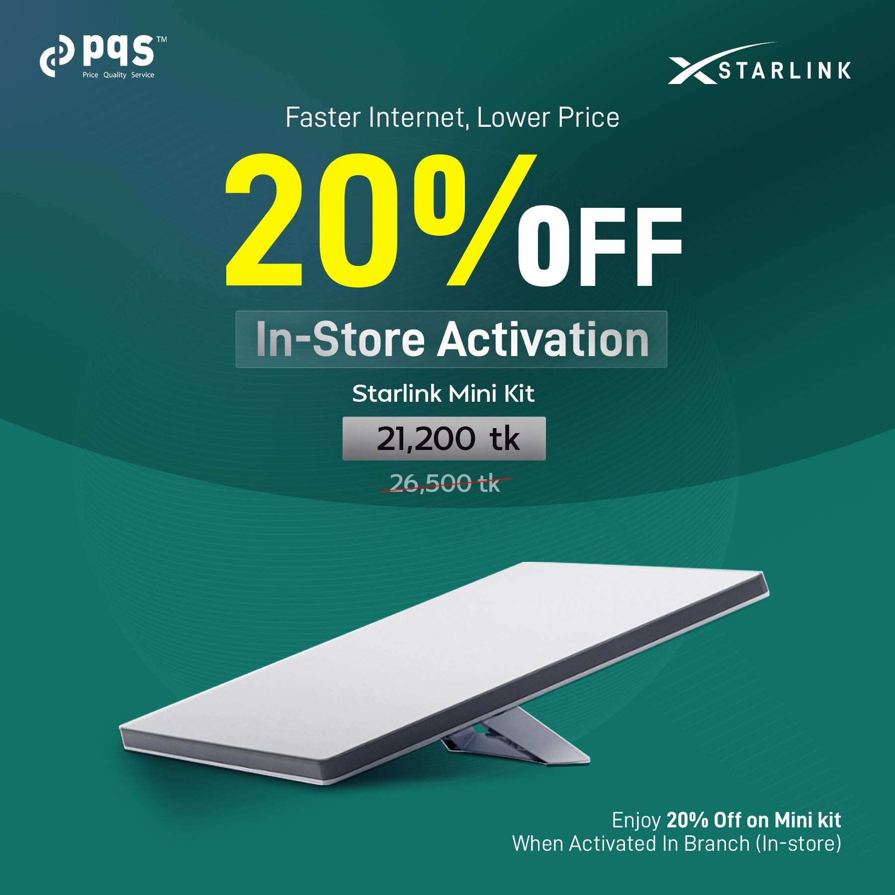 পিকিউএস থেকে ইন-স্টোর অ্যাক্টিভেশনেই পাচ্ছেন Starlink Mini kit -এ ২০% ছাড়!