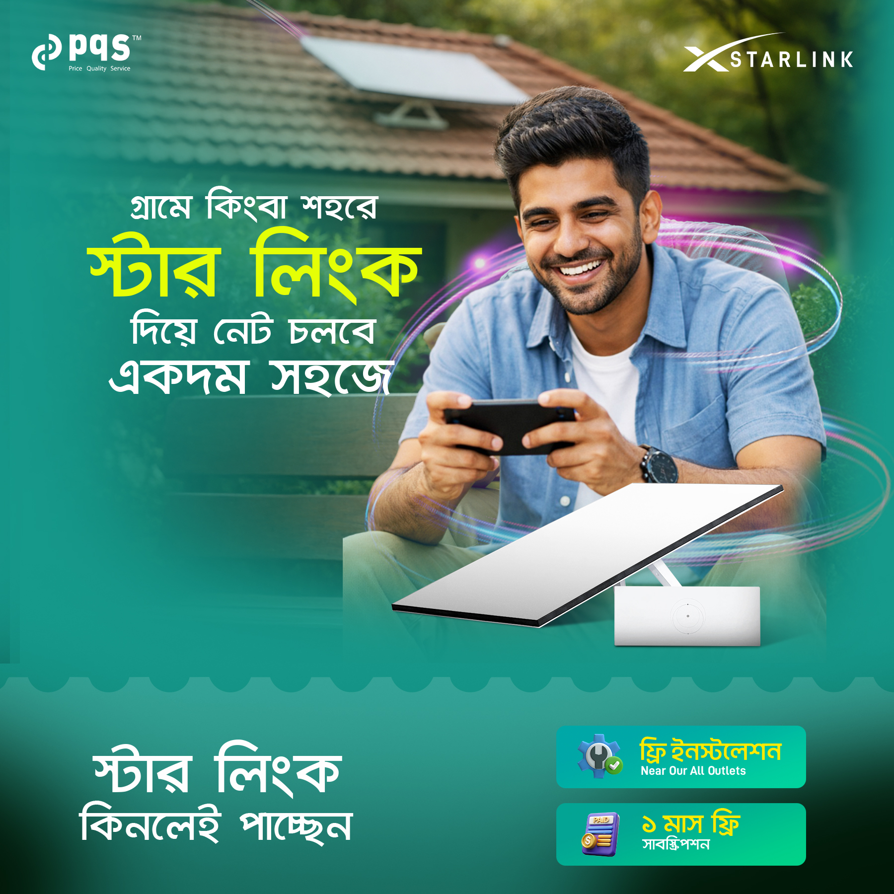 পিকিউএস থেকে যেকোনো Starlink Kit কিনলেই নতুন গ্রাহকদের জন্য থাকছে ১ মাসের সাবস্ক্রিপশন একদম ফ্রি ।