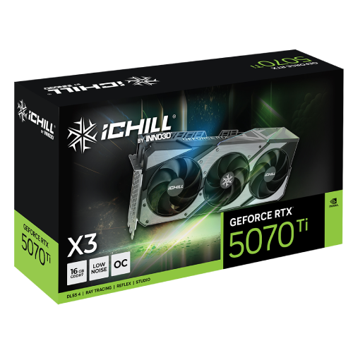 The INNO3D GeForce RTX 5070 Ti iCHILL X3 16GB GDDR7 is a powerful graphics card intended for demanding gaming and professional applications. It is based on NVIDIA's newest Blackwell architecture and comes equipped with 16GB of ultra-fast GDDR7 memory as well as advanced technologies such as DLSS 4, ray tracing, and AI-driven rendering for great visual performance and efficiency. The iCHILL X3 cooler features a triple-fan design, a vapor chamber, and a reinforced backplate to provide exceptional cooling and low noise even under severe loads. This GPU supports PCIe 5.0, DisplayPort 2.1, and HDMI 2.1b, allowing for 4K and even 8K gaming at high frame rates. The INNO3D GeForce RTX 5070 Ti iCHILL X3 is a superb pick for gamers and creators looking for top-tier performance. It combines cutting-edge performance, stylish RGB aesthetics, and long-lasting build quality. INNO3D GEFORCE RTX 5070 TI ICHILL X3 16GB GDDR7 Graphics Card comes with 3 Years Warranty.