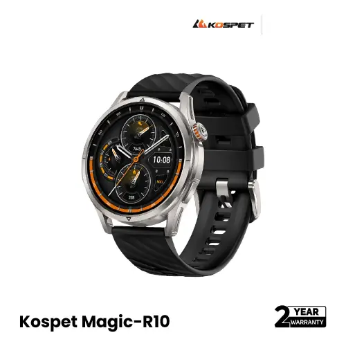 KOSPET Magic R10 Smart Watch is an elegant and function-rich Bluetooth calling smartwatch aimed at individuals seeking both quality performance and a luxurious appearance. It features a big HD touch screen, a seamless interface, and an integrated microphone and speaker for crisp calls straight from your wrist. Featuring various sports modes, heart rate tracking, SpO2 measurement, sleep analysis, and smart alerts, this smartwatch is ideal for everyday fitness and productivity. The durable construction, extended battery life, and water-resistant features render it perfect for daily use. For those looking for an affordable smartwatch in Bangladesh that offers calling, fitness tracking, and a stylish design, the KOSPET Magic R10 is an excellent option. KOSPET Magic R10 Smart Watch comes with 2 year warranty.