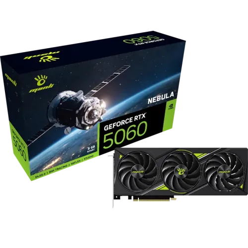 Based on NVIDIA's Blackwell architecture, the Manli Nebula GeForce RTX 5060 OC 8GB GDDR7 is a potent mid-range graphics card. It has 3,840 CUDA cores, 8GB of GDDR7 memory, a 128-bit interface, and a high memory bandwidth (about 448 GB/s) for seamless performance. Its 4th generation RT cores and NTensor cores enable it to run numerous titles at 1440p, including ray tracing, and it performs exceptionally well at 1080p gaming with boost frequencies of about 2.50 GHz. The card has a single 8-pin power connector, consumes approximately 145W of power, and outputs via numerous DisplayPort 2.1b ports in addition to HDMI 2.1b. Particularly for those seeking cutting-edge capabilities like DLSS 4, DisplayPort 2.1, and superior raster performance without venturing into the realm of expensive GPUs, it provides good gaming value. Manli Nebula GeForce RTX 5060 OC 8GB GDDR7 Graphics Card comes with 3 Years warranty.