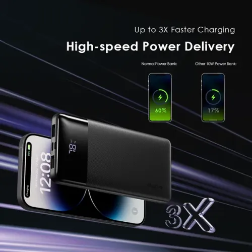 The Oraimo Toast 22.5 Byte (OPB-7100Q) exemplifies excellence in ultra-slim power provision, crafted for individuals requiring rapid charging in a compact design. Even with its remarkably slim design, it includes a high-density 10,000mAh lithium battery and provides an impressive 22.5W output, enabling the newest smartphones to reach 60% charge in just 30 minutes. It includes AniFast™ technology, which smartly detects your device’s fast-charging protocol (PD 3.0, QC 3.0, etc.) to deliver the most effective charging. Featuring a stylish LED digital screen, three output ports (Type-C + 2 USB-A), and a dedicated Low-Current Mode for earbuds and smartwatches, the Toast 22.5 Byte seamlessly combines sophistication and functionality for your everyday travels. Oraimo Toast 10000mAh 22.5W Type C Power Bank comes with 12 Months Warranty.
