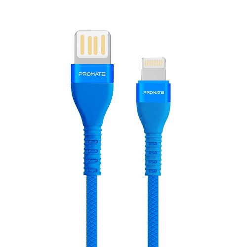The Promate VigoRay-I 1.2-meter tangle-free lightning cable High-quality four-core copper wires enhance the charging and data transfer speeds of the cables, while the stronger and more flexible nylon braided cables make them stress and stretch resistant, tangle-free, and help protect against daily wear and tear. The 2A charging support ensures a faster charging time while keeping your device completely safe. Ensure a maximum charging speed of up to 2A; it charges faster than most standard cables and works better for tablets and quick-charge devices. Great performance ensures your devices sync and charge simultaneously. Vigoray-i is fully compatible with Qualcomm Quick Charge and most other high-speed charging protocols. Built with a TPE-coated jacket, this anti-tangle cable is created with durable materials that provide enhanced strain relief. Featuring an innovative reversible male USB connector design, it can be inserted in your Laptop or AC adapter in any orientation, and the custom-molded slim connector can fit most premium cases. Connector material is formed using hard and soft TPE to ensure durability. Innovative engineering is used to create an almost unbreakable bond; no other brands use such advanced techniques for their cables. The Promate VigoRay-I 1.2-meter tangle-free lightning cable has a 2-year Warranty.