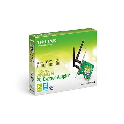 The TP-Link TL-WN881ND 300Mbps Wireless N PCI Express Adapter allows you to connect a desktop computer to a wireless network and access a high-speed Internet connection. It provides wireless speed of up to 300Mbps, which is beneficial for online gaming or even HD video streaming. TL-WN881ND has two detachable antennas that can be rotated and adjusted in different directions to fit various operation environments. And also, the antennas can be replaced with diverse indoor antennas or directional antennas to show wider wireless coverage. The TP-Link TL-WN881ND 300Mbps Wireless N PCI Express Adapter has a 1-year Warranty.